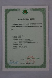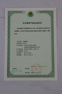 无公害认证证书