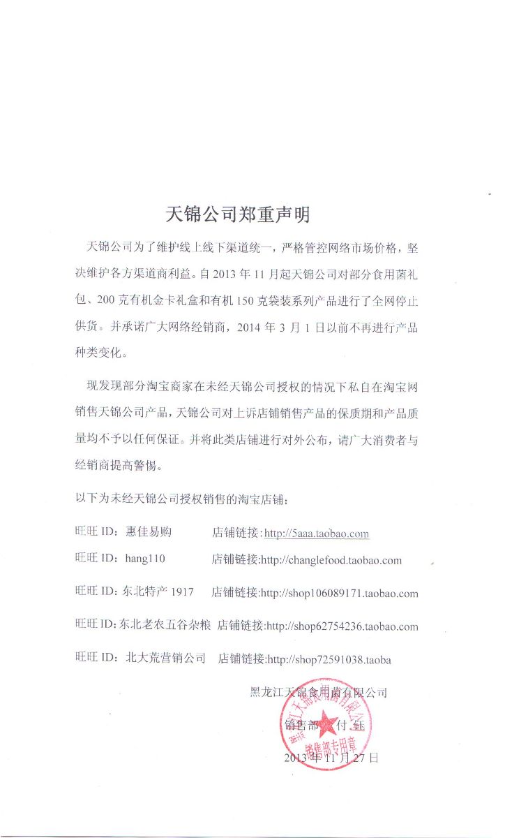 天锦公司线上部分产品停止供应通知(供销平台已下架)