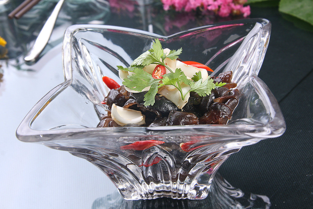 优质黑木耳一面呈黑褐色光润,另一面有一层致密很短的绒毛,略呈灰褐色,两面泾渭分明,朵大适度,耳瓣略展,质轻,手感脆硬,质地厚实,且无杂物硬蒂,嗅起来有独特的清香;用水泡发可涨发10-12倍;发制煮后的黑木耳朵大色黑肉厚,不腐不烂,柔软而有弹性。